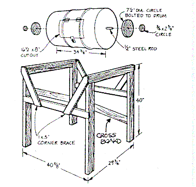Drill a 1/2" hole in the center of both ends of the drum. Has to be