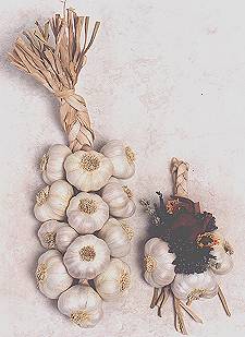 At least 12 garlic bulbs with the tops still attached. (Onions also