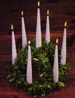 Later, the candle wheel was worn as a chaplet on the head. Edain McCoy in _Sabbats: A New Approach to Living the Old Ways_ says this idea originated with Norse Yule customs. In Sweden today, this custom remains intact. There the crown is usually made of woven wortleberry twigs or evergreen boughs, and is used in the celebration of St. Lucia's Day (December 13). Lucia, by the way, is probably a later incarnation of Lucina, Roman Goddess of Light.