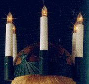 After decorating is completed (red or white ribbons might be appropriate here), place the 8 candles in the candleholders and light.