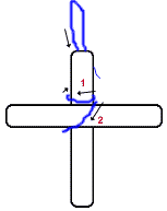 4. Wrap the yarn around the top stick and overlap the piece of yarn you have left dangling.