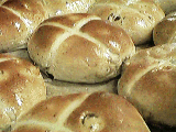 On Good Friday, it is the custom in Britain to eat round, fruit-filled buns with a cross decoration on top. The combination of cross and round bun recalls the pre-christian Celtic Cross, which represented the union of male and female. The phallic cross within the yonic circle would be appropriate for this time of fertility (Spring). Hot cross buns are descendants of the cakes offered by the Greeks to goddesses Artemis and Hecate. These cakes were round symbolizing the Full Moon, and were decorated with horns that formed a cross-shape and represented the four quarters of the lunar cycle.